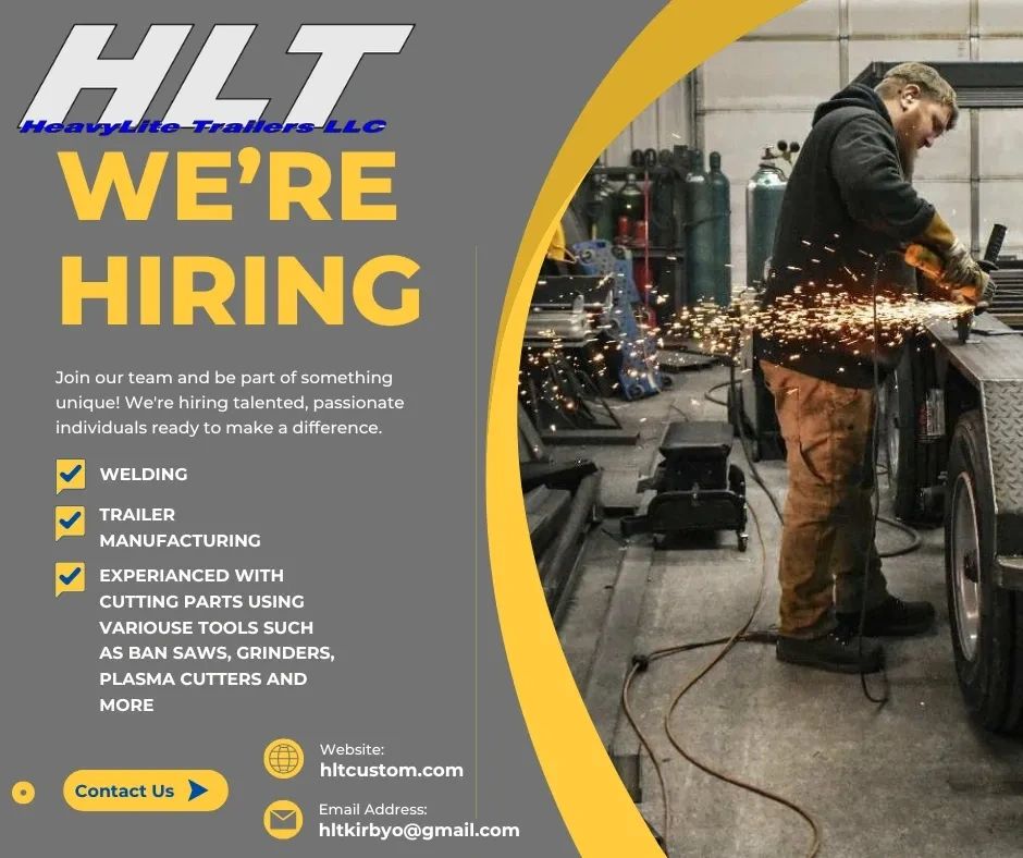 Looking for a rewarding full time career? Consider joining our team of fulltime welders, fabricators and painters. Feel free to stop out and grabbed an application or apply online.